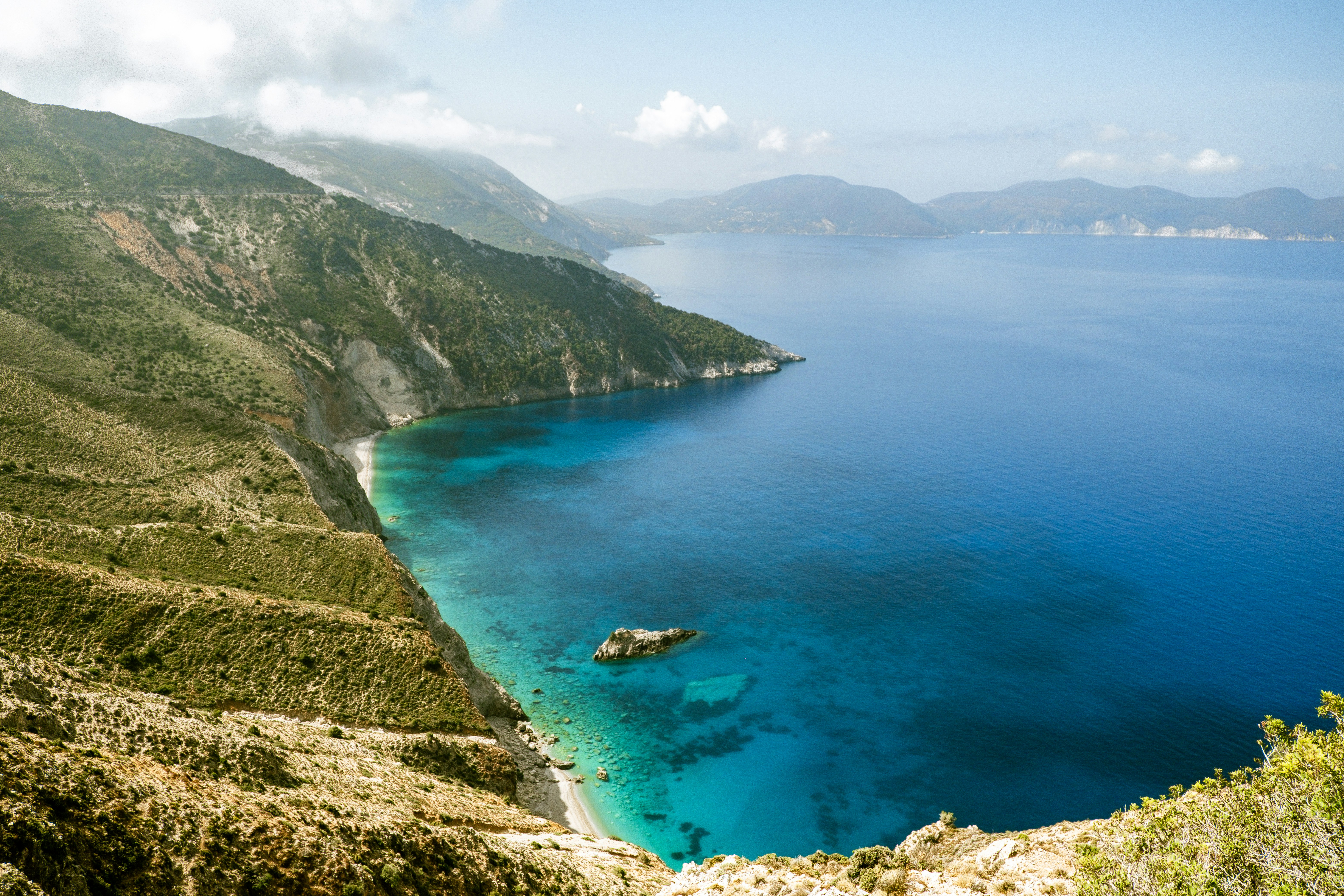 Myrtos Beach on the island of Kefalonia is often considered one of the most beautiful beaches in Greece—and for good reason. With its smooth white pebbles, crystal-clear blue waters, and dramatic cliffs surrounding it, Myrtos is nothing short of breathtaking. It’s the perfect place to relax and enjoy the natural beauty of the Ionian Sea, far from the bustling crowds of more popular Greek beaches.